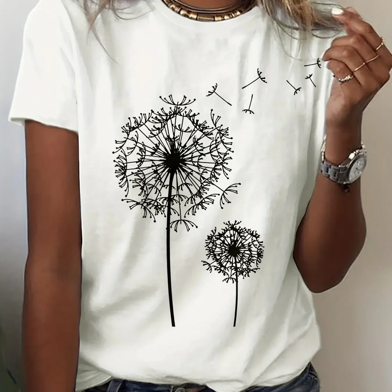 Effortless Style With A Whimsical Touch Dandelion Print Women's Shirt